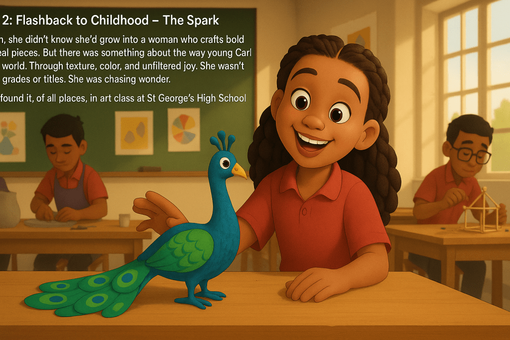 Back then, she didn’t know she’d grow into a woman who crafts bold sculptural pieces. But there was something about the way young Carl saw the world. Through texture, color, and unfiltered joy. She wasn’t chasing grades or titles. She was chasing wonder.