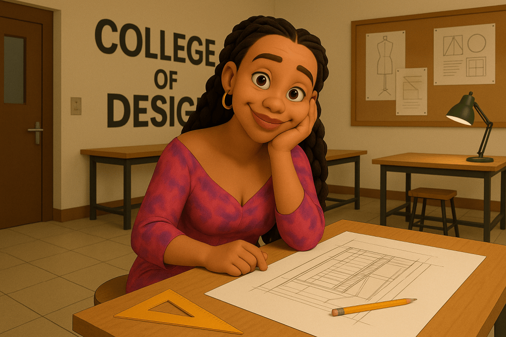 But even in rebellion, creativity has a way of finding you. And by her second year, she was knee-deep in crafts work, drafting, designing, and realizing she was exactly where she needed to be.