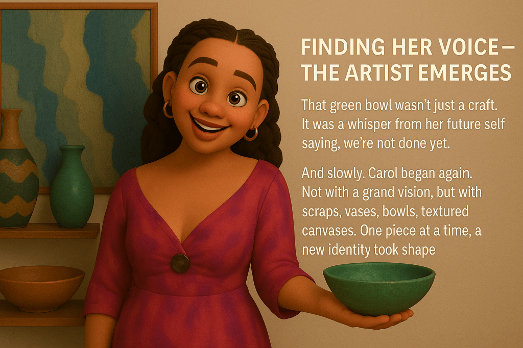 And slowly, Carol began again. Not with a grand vision, but with scraps, vases, bowls, textured canvases. One piece at a time, a new identity took shape.
